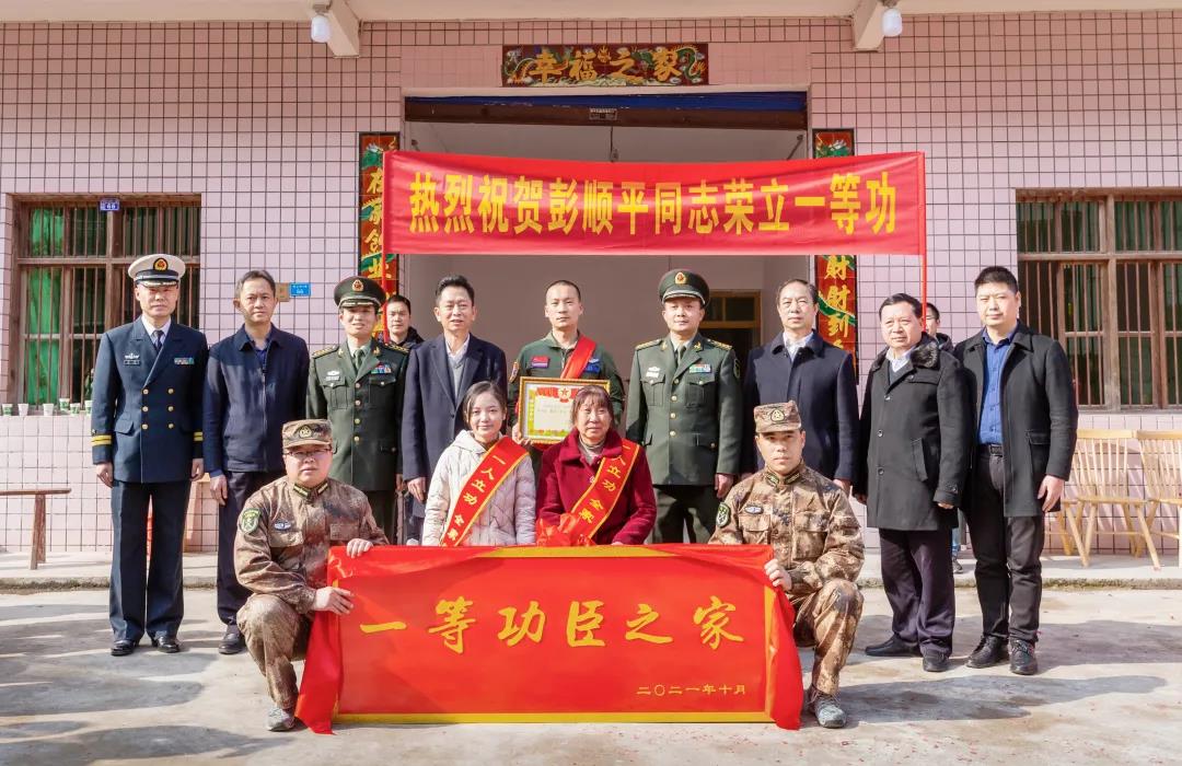 近日,重庆市退役军人事务局、重庆警备区、中国人民解放军某部以及九龙坡区、梁平区组成慰问组,分别为荣立一等功的梁平区现役军人彭顺平、九龙坡区现役军人王帅家送去“一等功臣之家”牌匾及立功喜报,把党和政府的关怀和温暖送到军属家中。