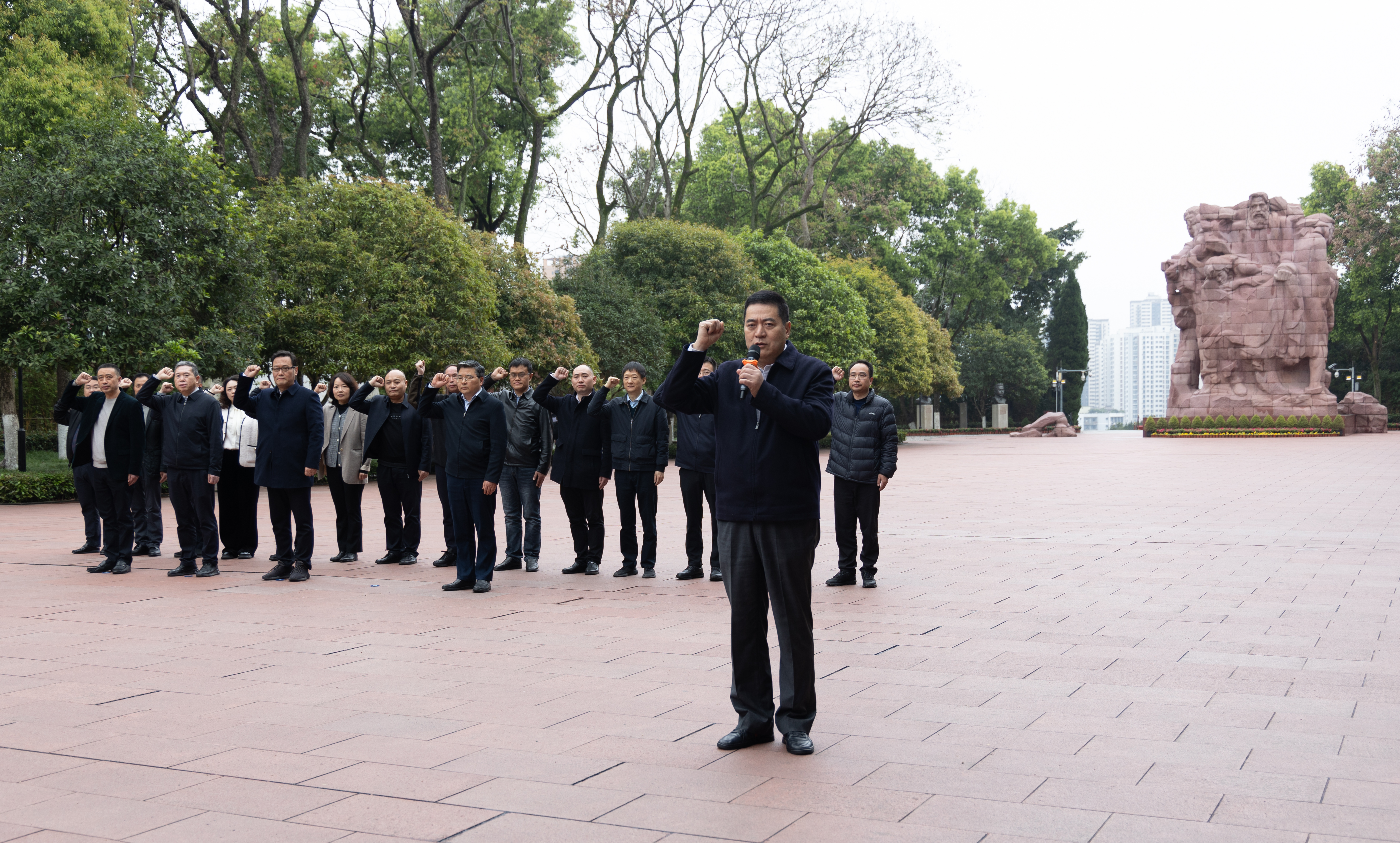 歌乐山烈士陵园庄严肃穆,红岩英烈群雕巍然耸立。全体人员怀着无比崇敬的心情,肃立默哀,深情瞻仰烈士墓、敬献鲜花,并重温入党誓词。随后,现场调研了烈士纪念设施保护管理、烈士纪念活动开展等情况,走进歌乐山革命纪念馆陈列馆,聆听红岩干部学院讲解员以《解析叶挺将军〈囚歌〉》为题的微党课。大家表示,这不仅是一次生动的学习活动,循着先辈的足迹,切身感受革命先烈不畏牺牲、爱国奉献的崇高精神;更是一次深刻的思想洗礼,从红色历史中感悟党的初心使命,牢记“我是谁、为了谁、依靠谁”,履职尽责、敢于担当,努力为退役军人事业发展奉献光和热。