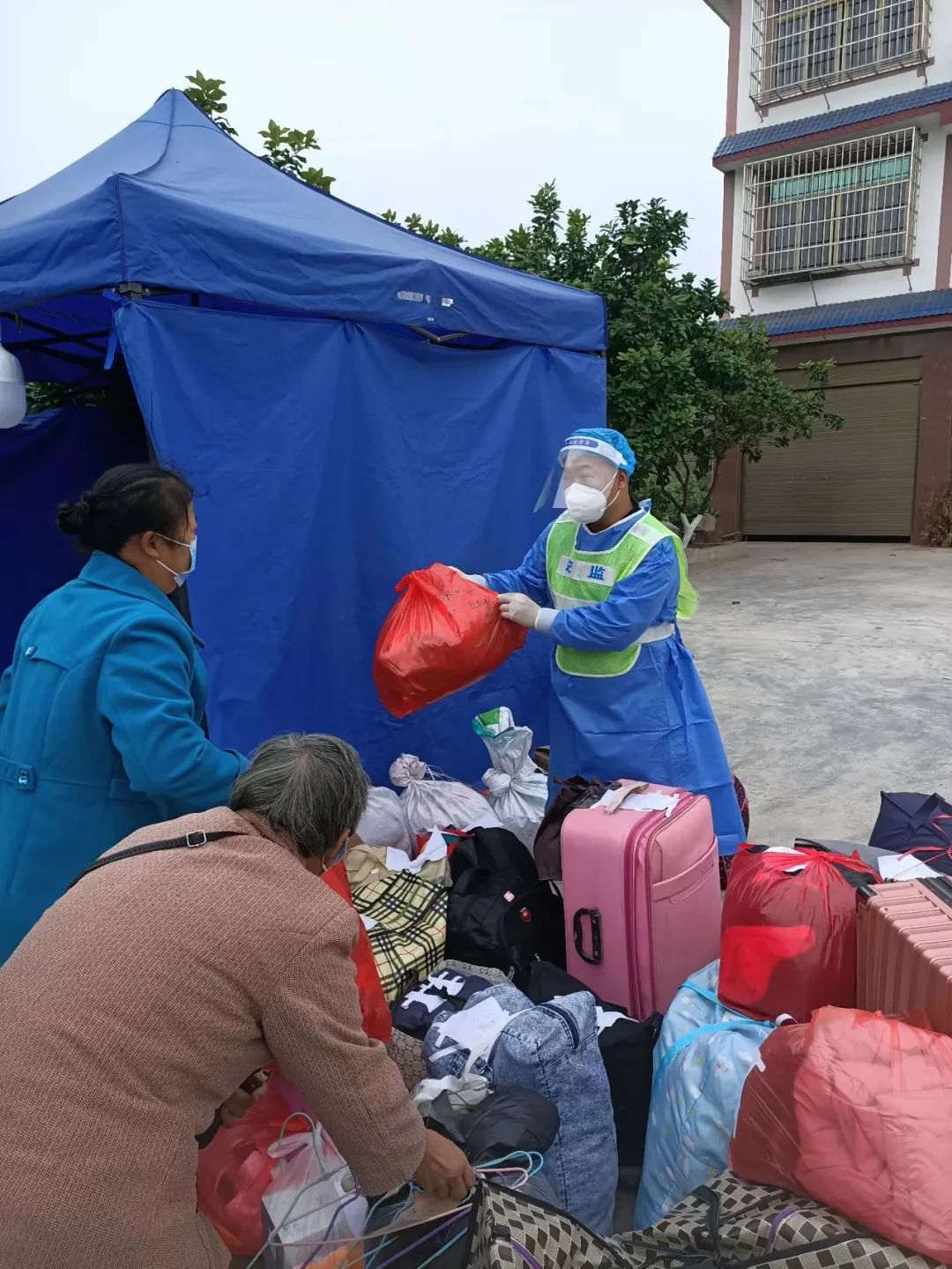 近段时间,龙市镇、肖家镇两地在校学生需要过冬衣物,退役军人李彬、李强主动与学生家长进行对接,由家长将衣物送至执勤卡点处,再由李彬、李强进行消杀后送至学校,解决了家长和学生的难题。