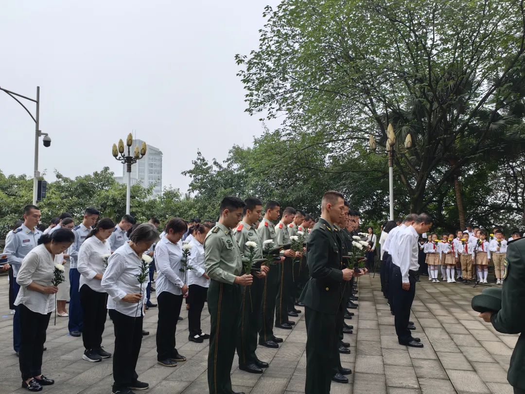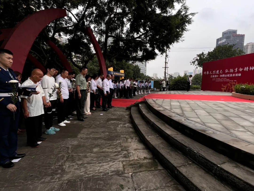两江新区组织开展烈士纪念日活动,共100余人在区烈士英名墙前向烈士敬献鲜花。