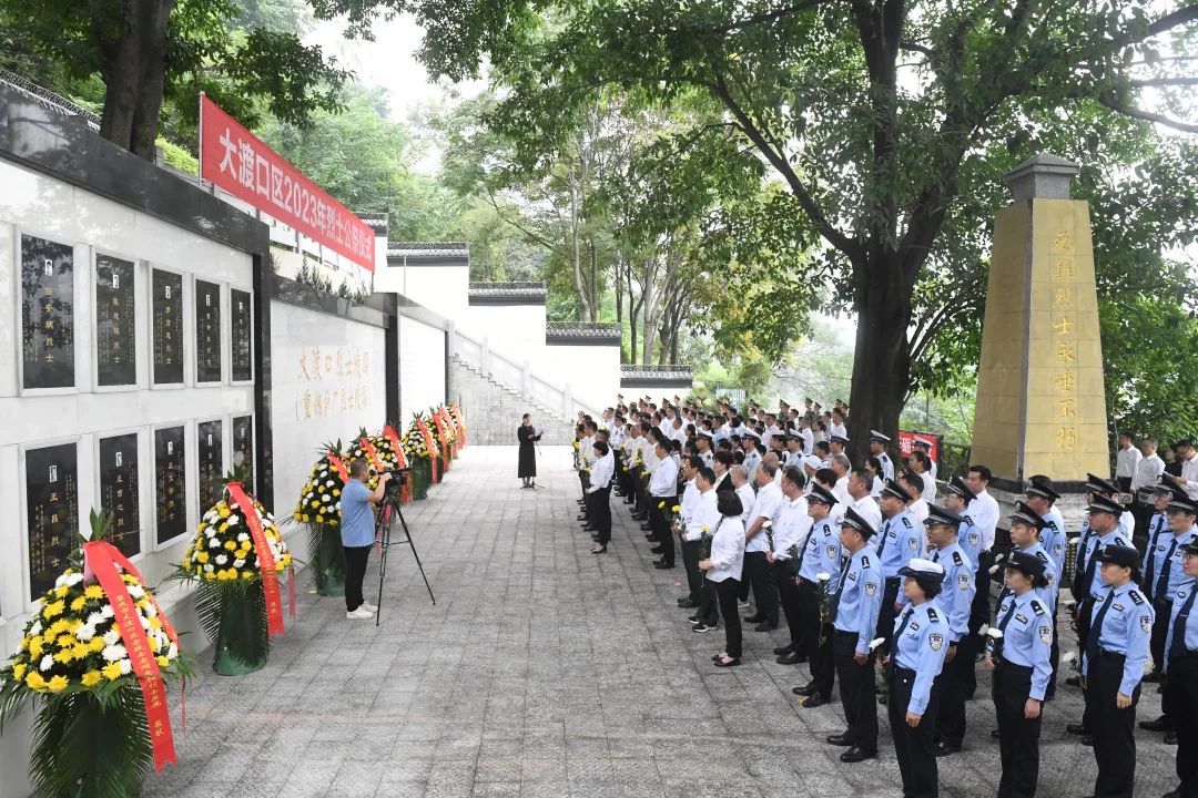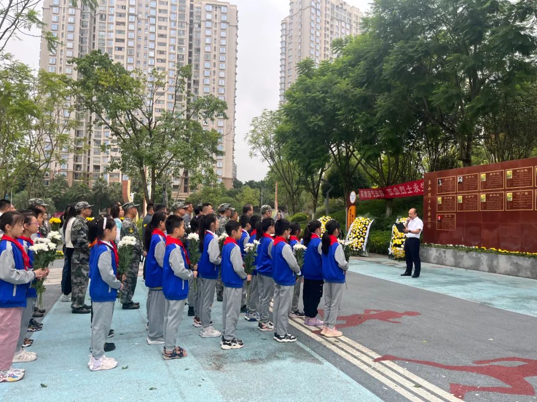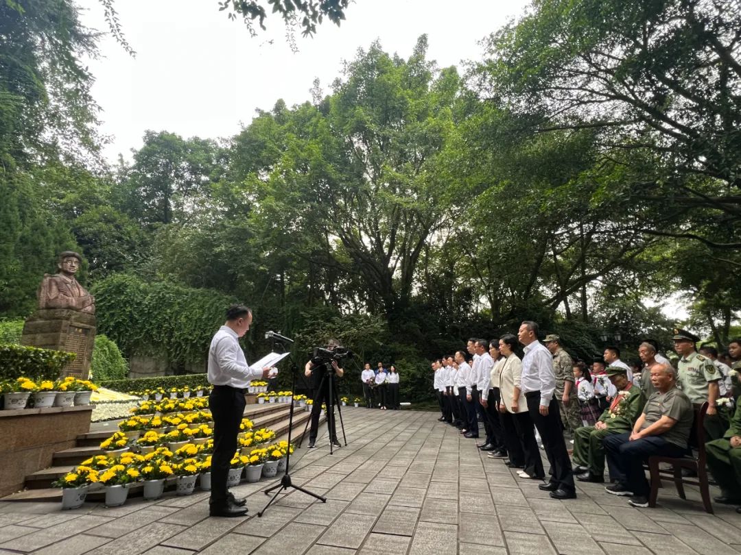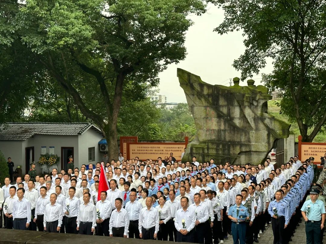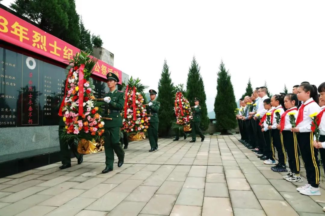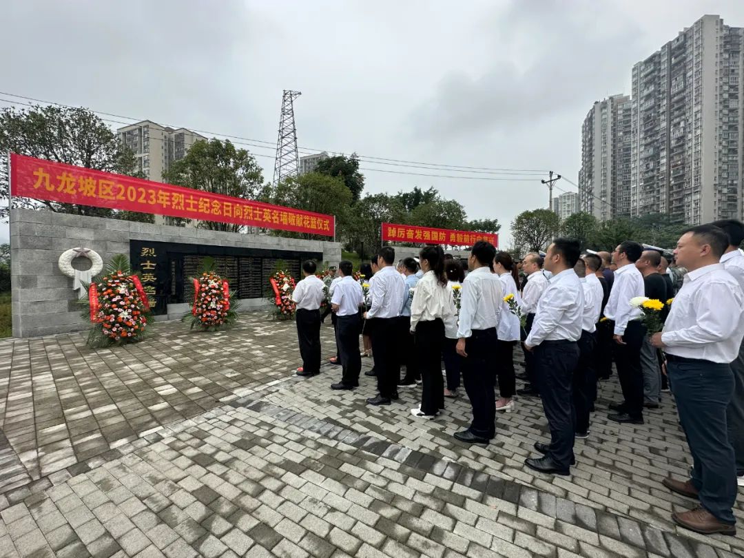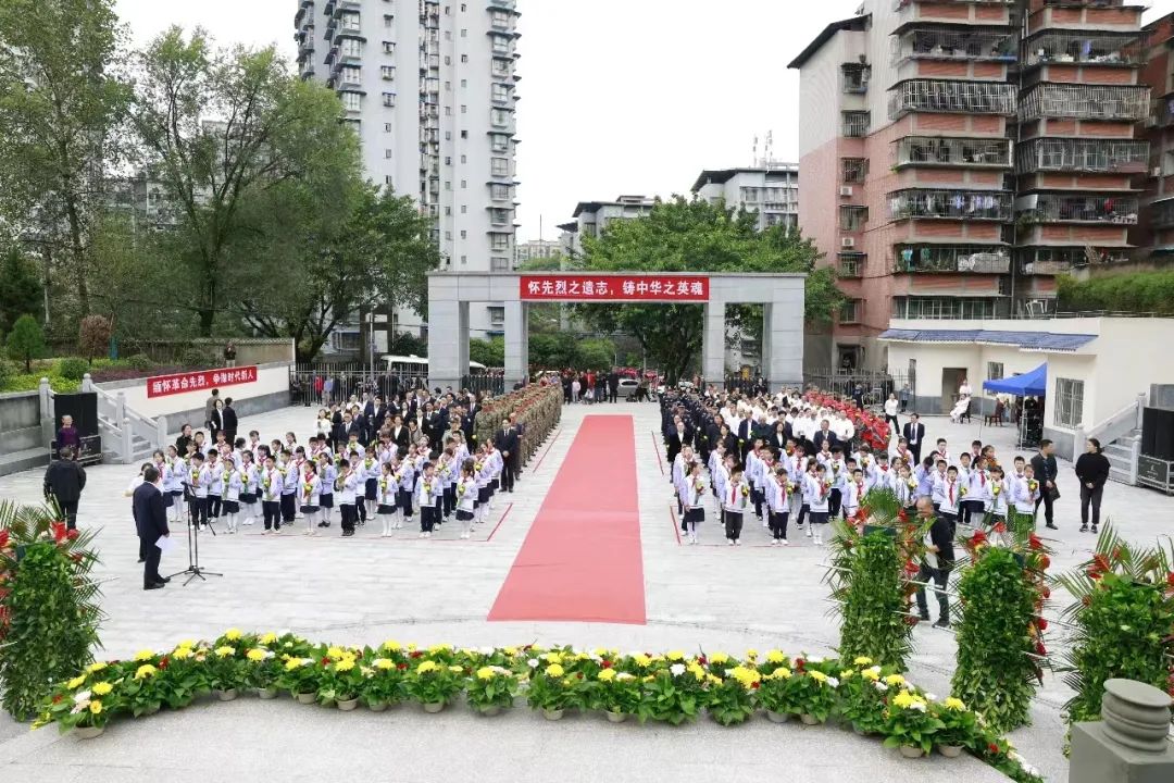 九龙坡区组织社会各界代表共100余人,在区烈士英名墙前向烈士敬献花篮。