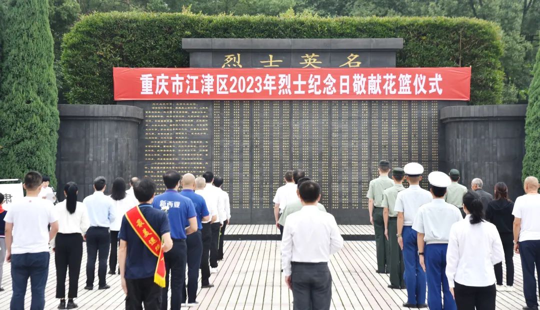江津区2023年烈士纪念日敬献花篮仪式在区烈士陵园举行,共100余人参加。