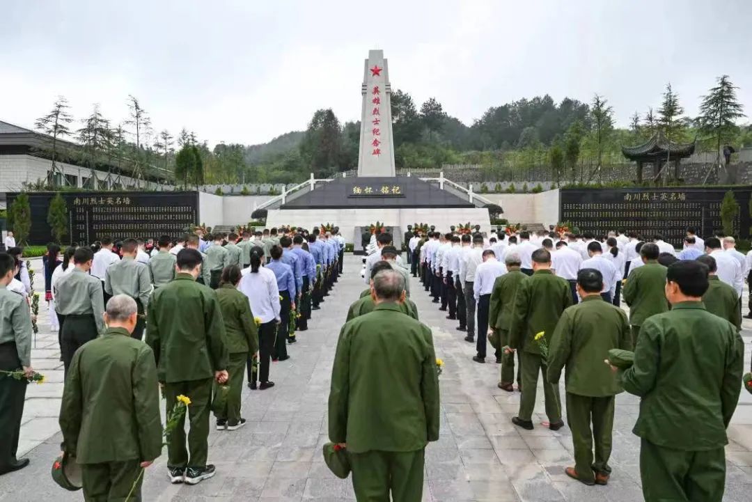 南川区2023年烈士纪念日敬献花篮仪式在区烈士陵园举行,共200余人参加。